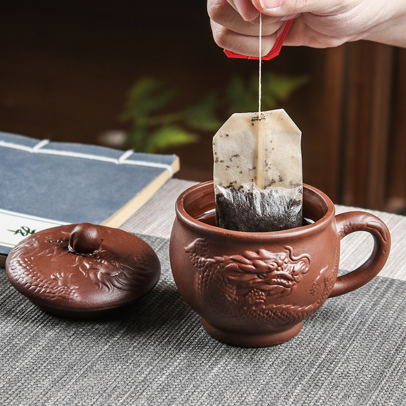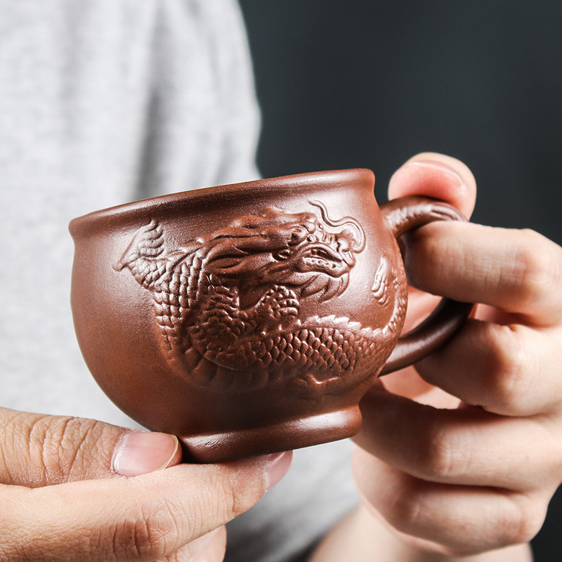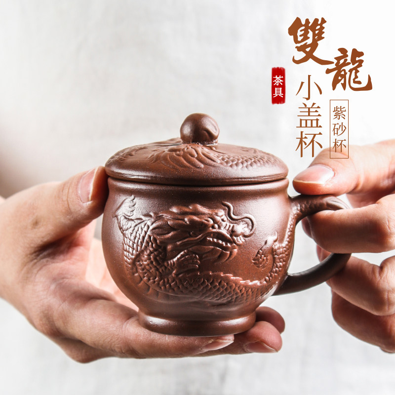 宜兴紫砂杯带把带盖小茶杯手工陶瓷杯家用办公泡茶养生主人杯杯子