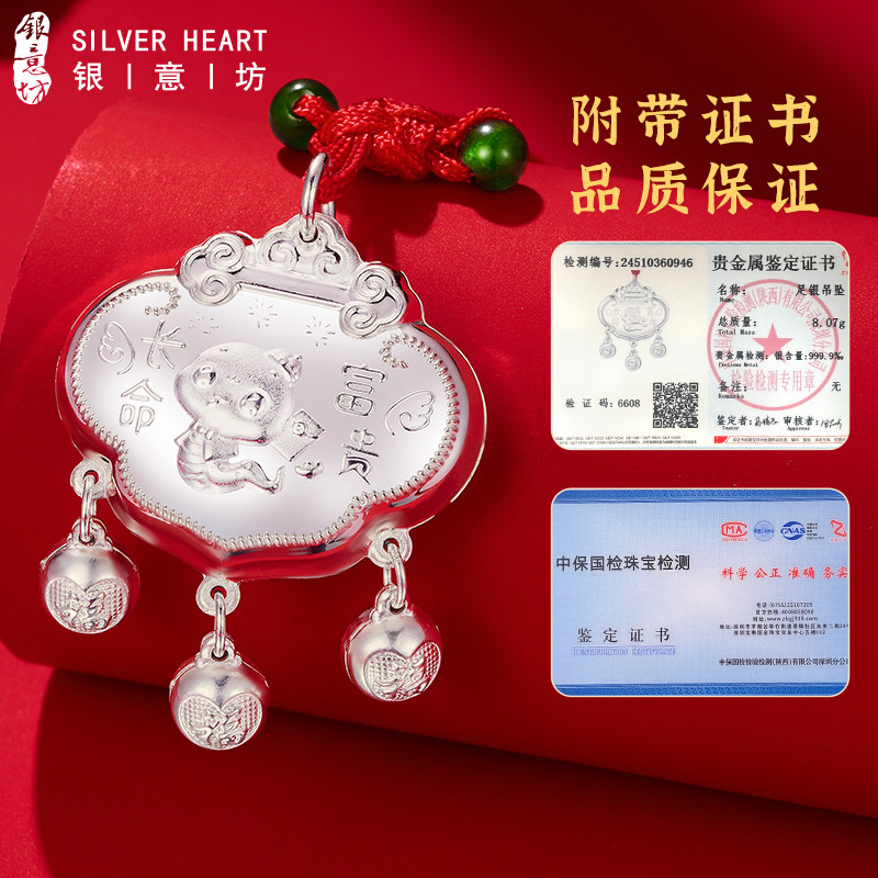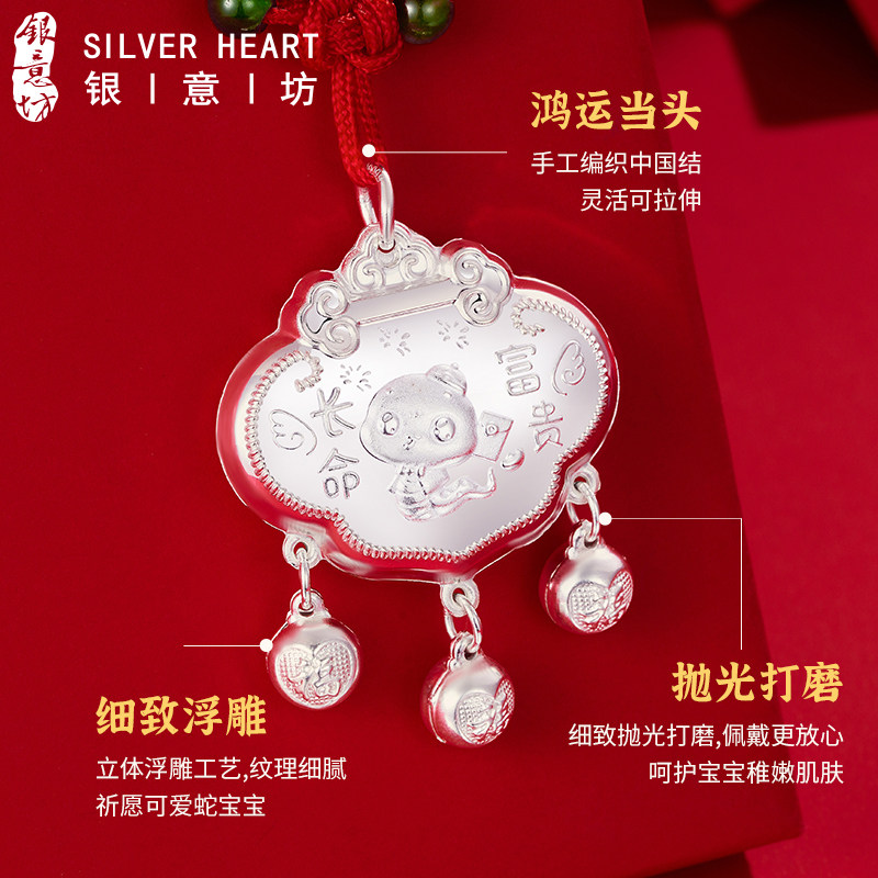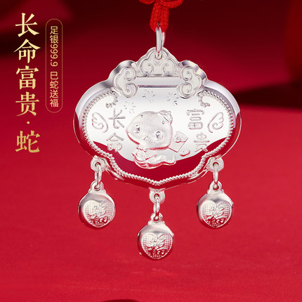蛇宝宝出生见面礼银锁婴儿宝宝银长命锁纯银9999生肖蛇吊坠平安锁