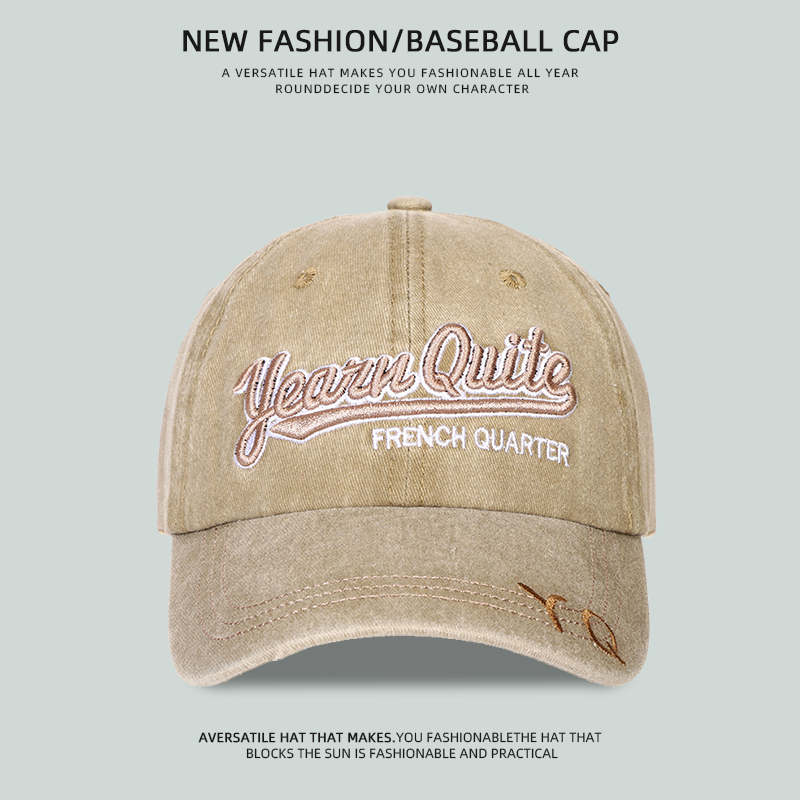 复古做旧水洗牛仔棒球帽子女百搭宽檐显脸小户外遮阳刺绣鸭舌帽男