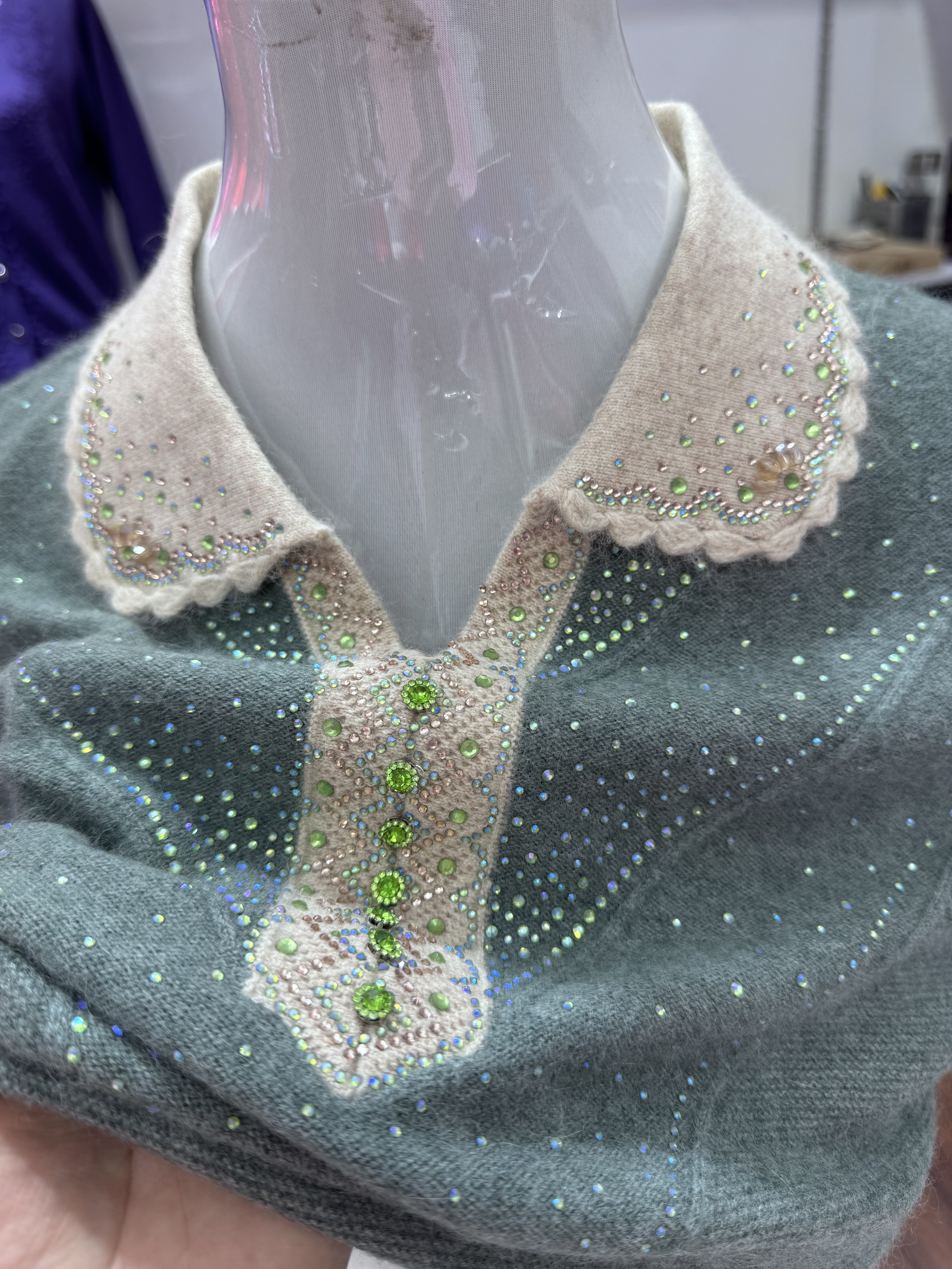 本命年红色貂绒毛衣妈妈秋冬洋气镶钻针织打底衫女宽松polo领上衣
