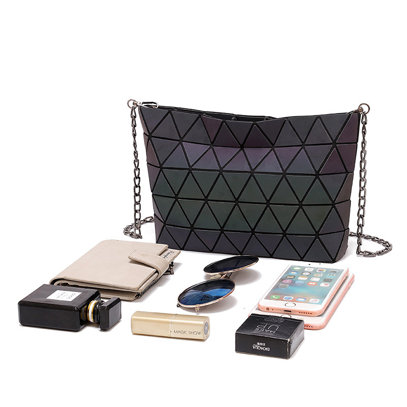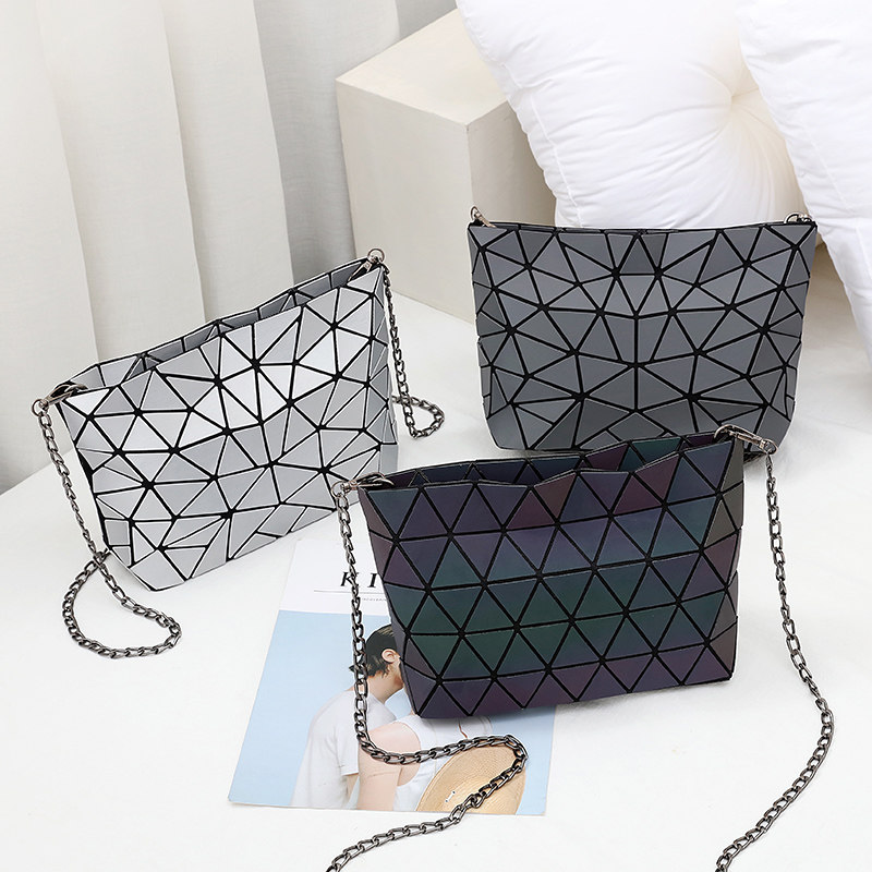 包包女2025几何菱格单肩斜挎包时尚休闲变色镭射潮流链条包信封包