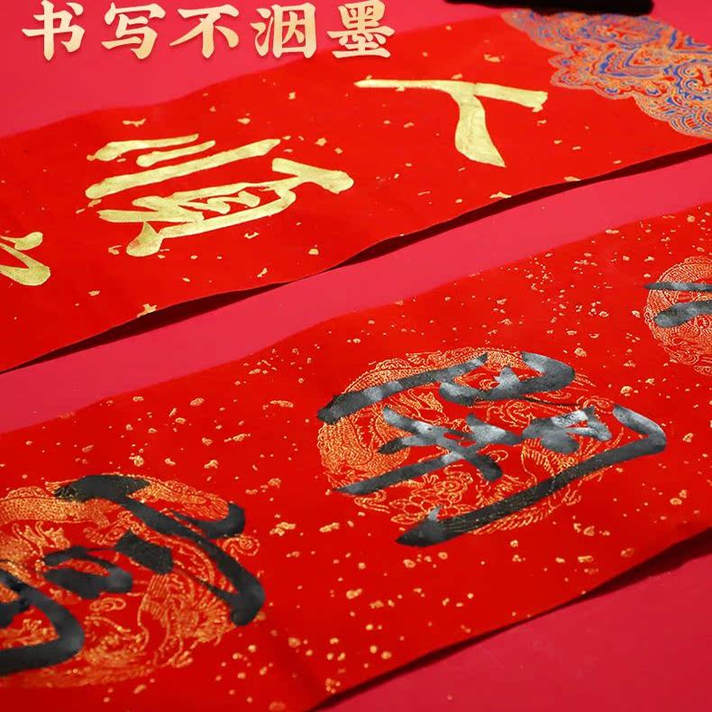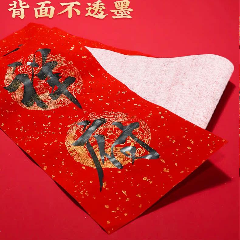 批发 万年红对联宣纸春联纸空白手写专用纸七言春联红纸大红书法洒金春节对联定制logo
