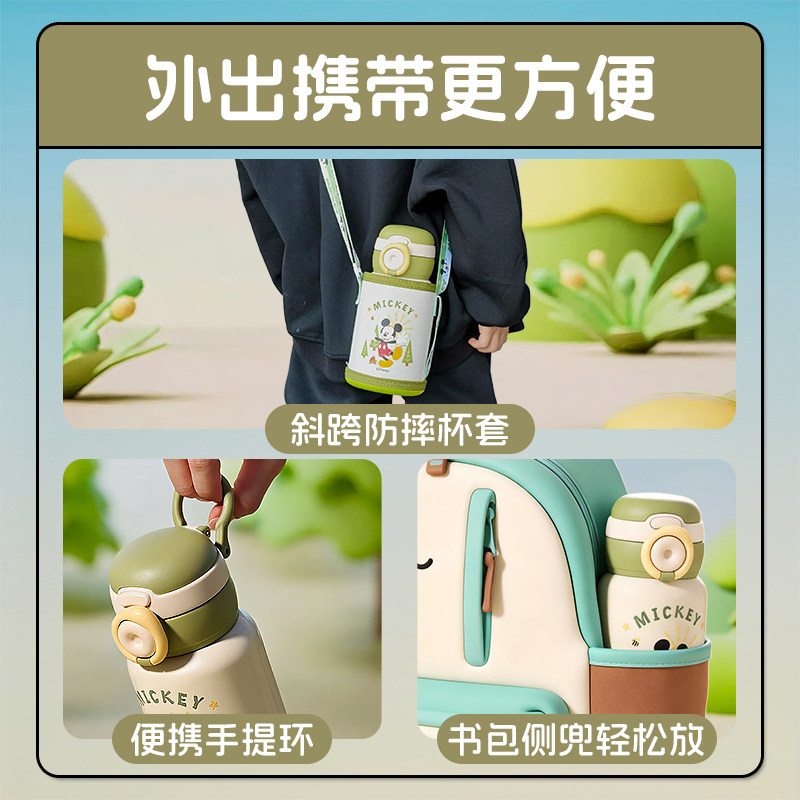 迪士尼儿童保温杯男孩上学专用316不锈钢幼儿园吸管水杯便携水壶