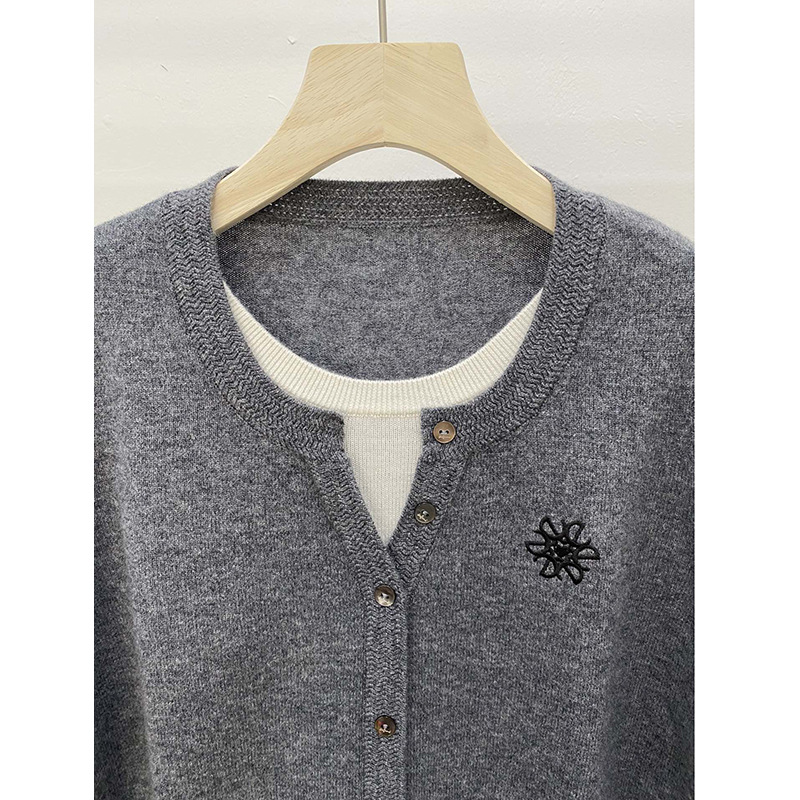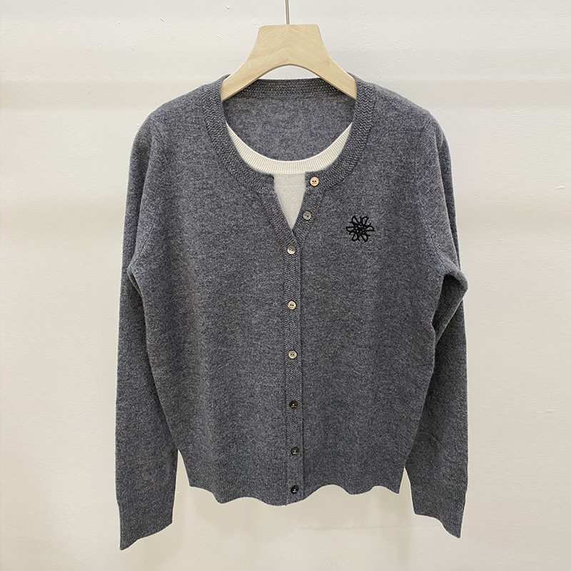 2023冬季新款宽松显瘦假两件圆领毛衣套头针织衫女1EA632214