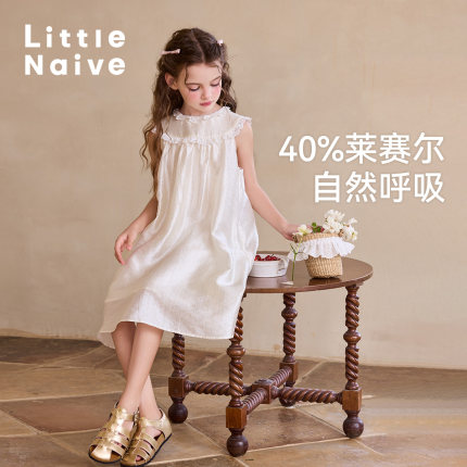 Little Naive女童连衣裙夏季新款莱赛尔裙子儿童花边缎面背心裙