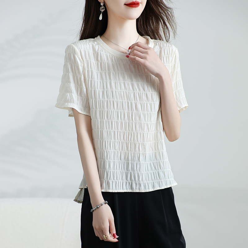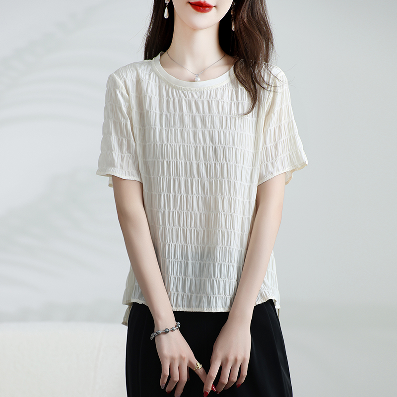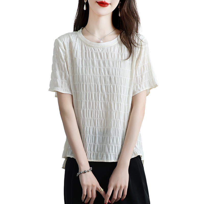 新款真丝上衣女短袖桑蚕丝T恤