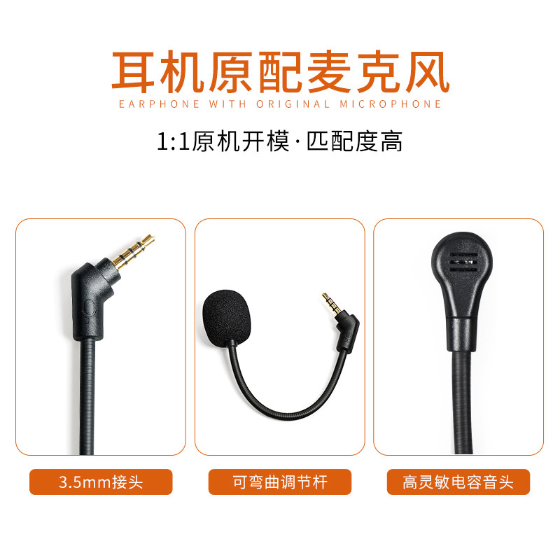 适用金士顿HyperX极度未知Cloud飓风2代3代麦克风咪罩天际阿尔法黑鹰S/天箭S/夜鹰S耳机麦克风配件可插拔咪杆