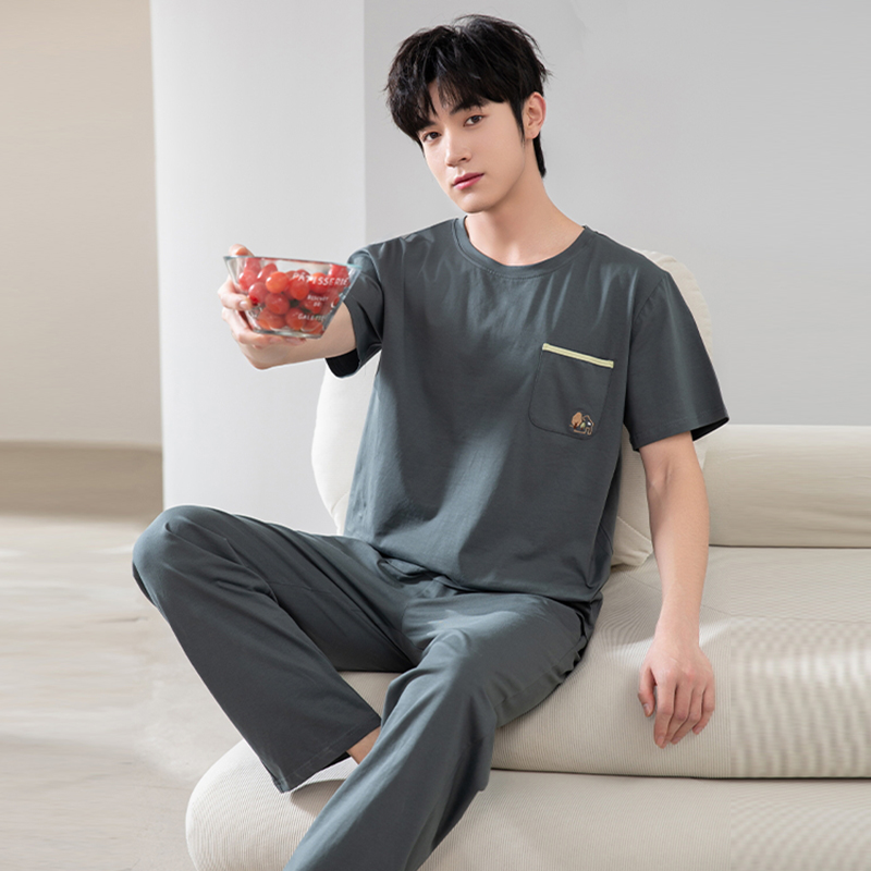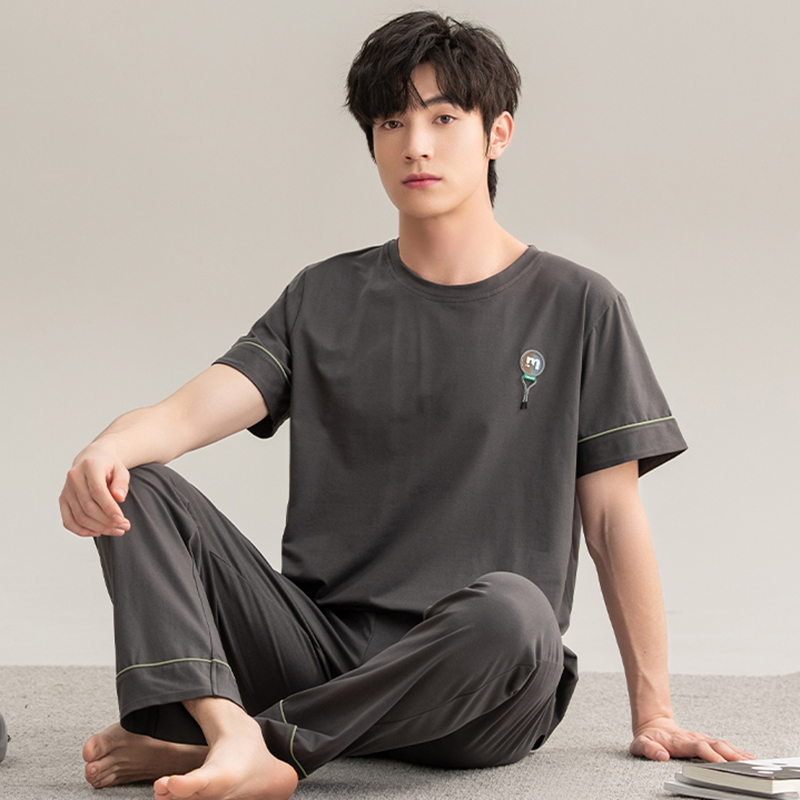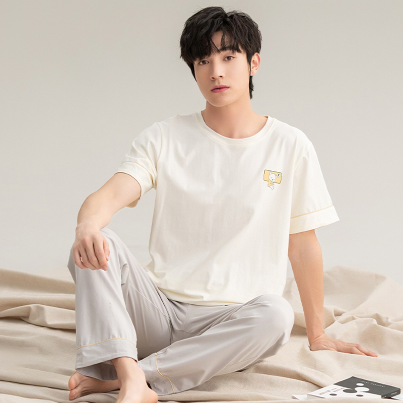 男士睡衣夏季纯棉休闲短袖长裤套装2025新款高级感宽松男款家居服