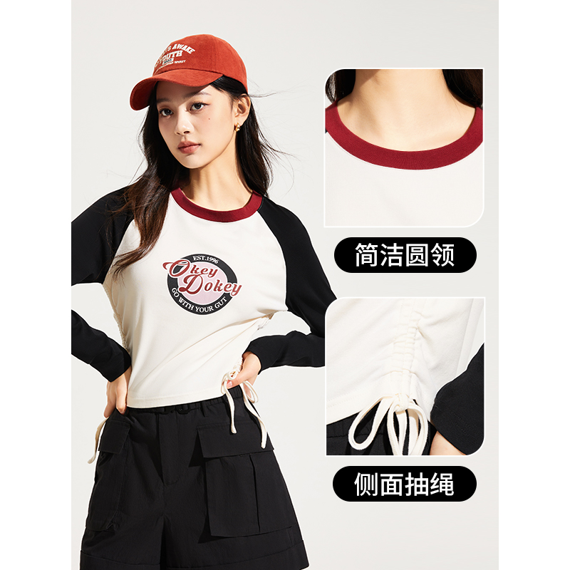 热风2024年秋季新款女士插肩袖长袖T恤甜酷风修身打底衫甜美T恤女