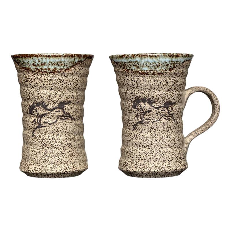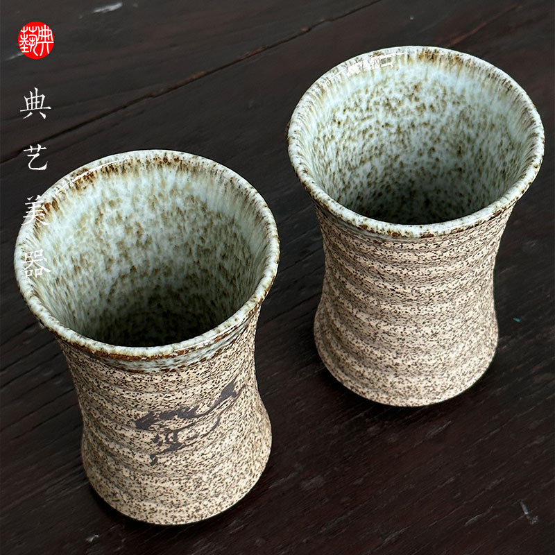 日本福岛古相马烧半勝款陶瓷啤酒酒杯一对外芝麻陶内施釉全新