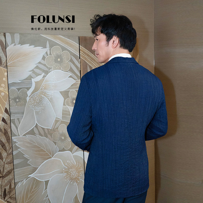 佛伦斯FOLUNSI男装单西外套男春秋款休闲西装泡泡纱男士西服上衣