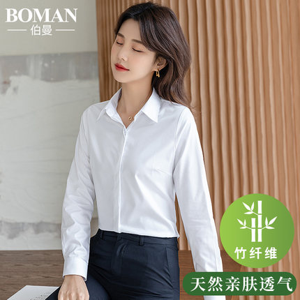 2025春秋新款竹纤维长袖白衬衫女职业气质百搭短袖衬衣正装工作服