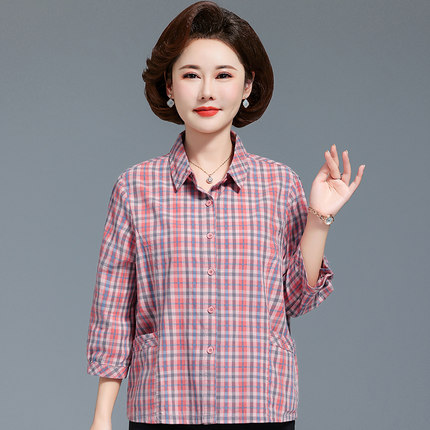 中老年女春夏装纯棉七分中袖短款薄外套时尚洋气妈妈衬衫上衣50岁