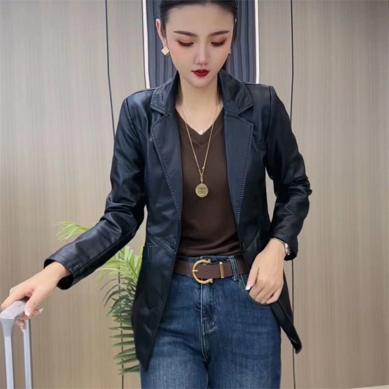 大码女装皮衣外套女春季2025新款韩版百搭设计感气质复古西装上衣