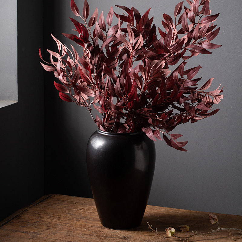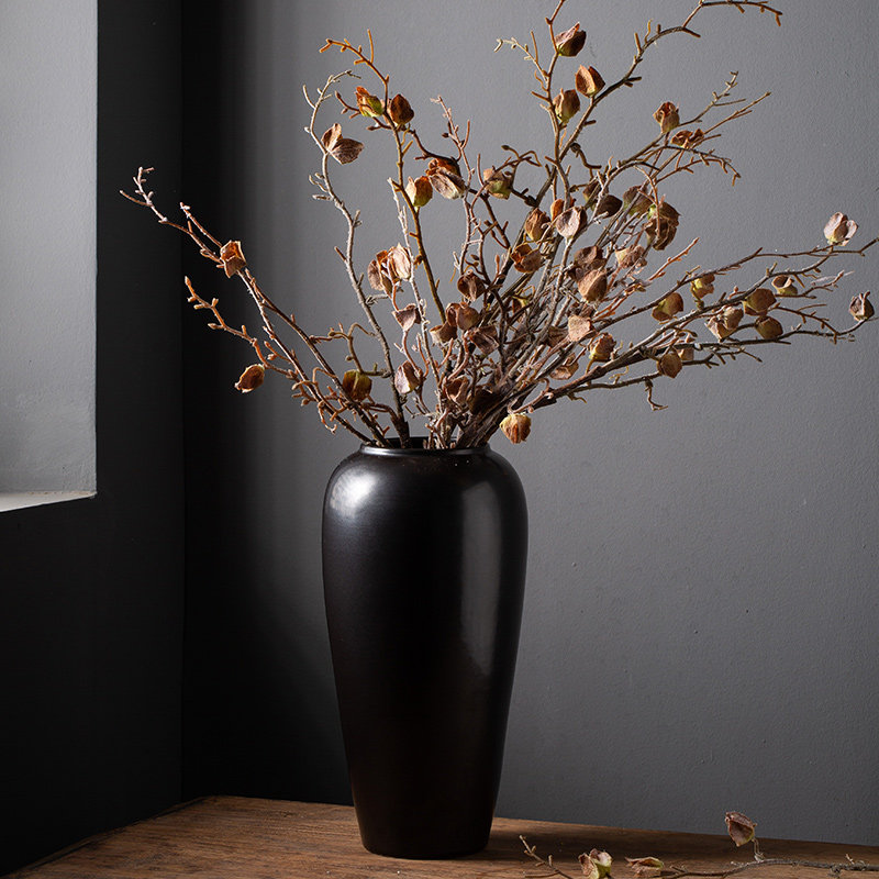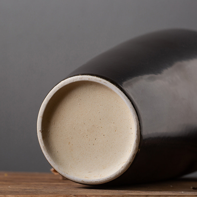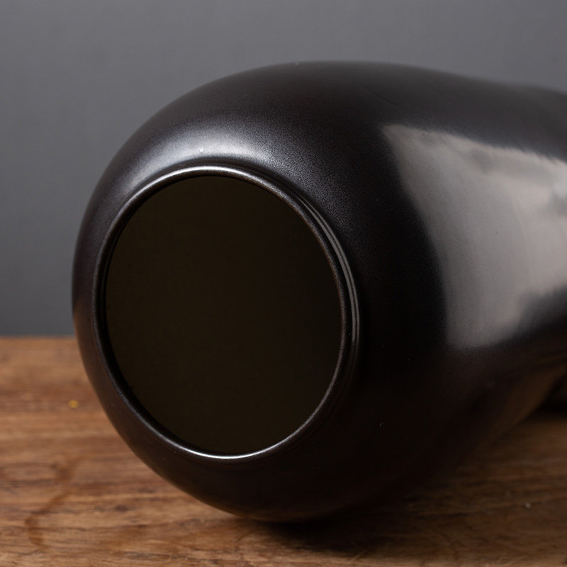 景德镇高温陶瓷光滑面黑色水培花瓶插花家居摆件干花陶罐