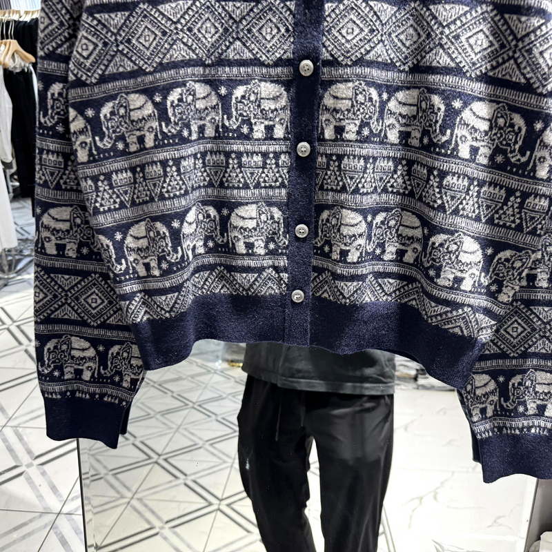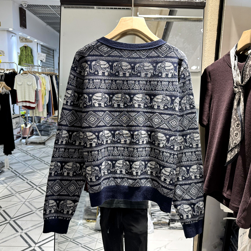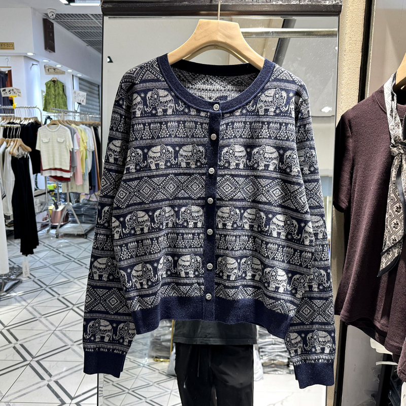 13-52220 欧洲站秋装2025新款时尚复古大象图案休闲针织开衫上衣