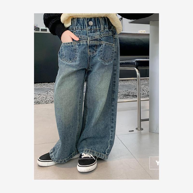 女童牛仔裤秋装2025新款洋气韩版小女孩直筒裤宽松春季儿童阔腿裤