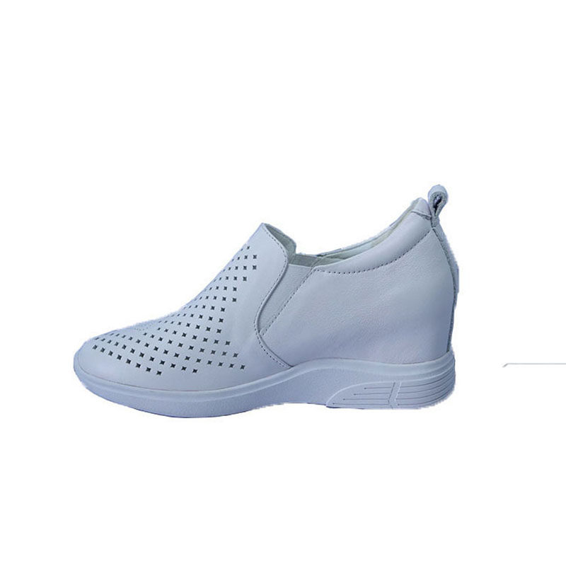 夏季牛皮镂空透气坡跟休闲鞋镂空