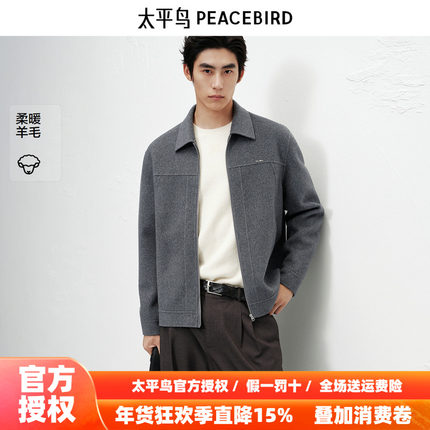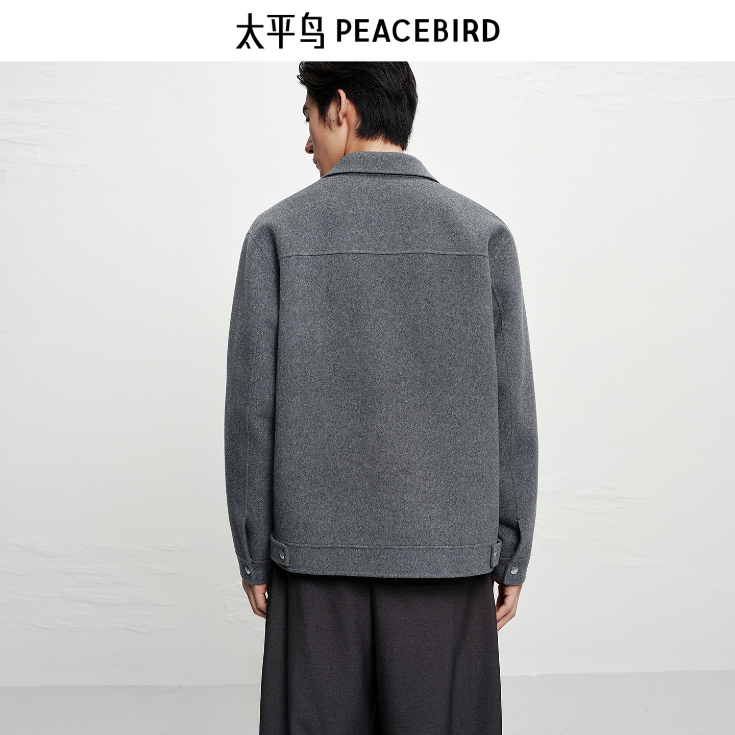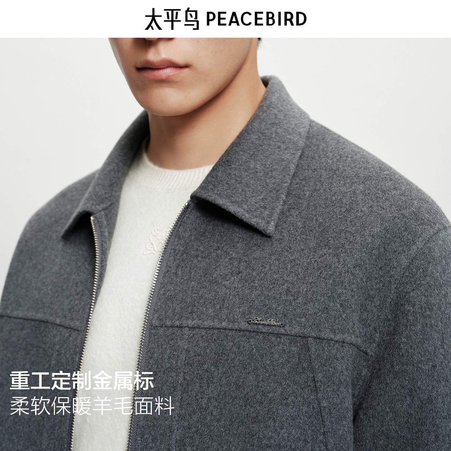 【保暖羊毛】太平鸟男装翻领毛呢夹克2025冬新款纯色通勤休闲外套