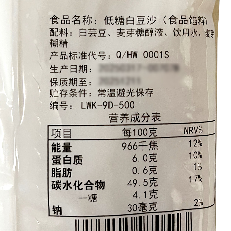 力创低糖白豆沙500g白芸豆馅韩式裱花果子茶月饼粽子水性馅料商用