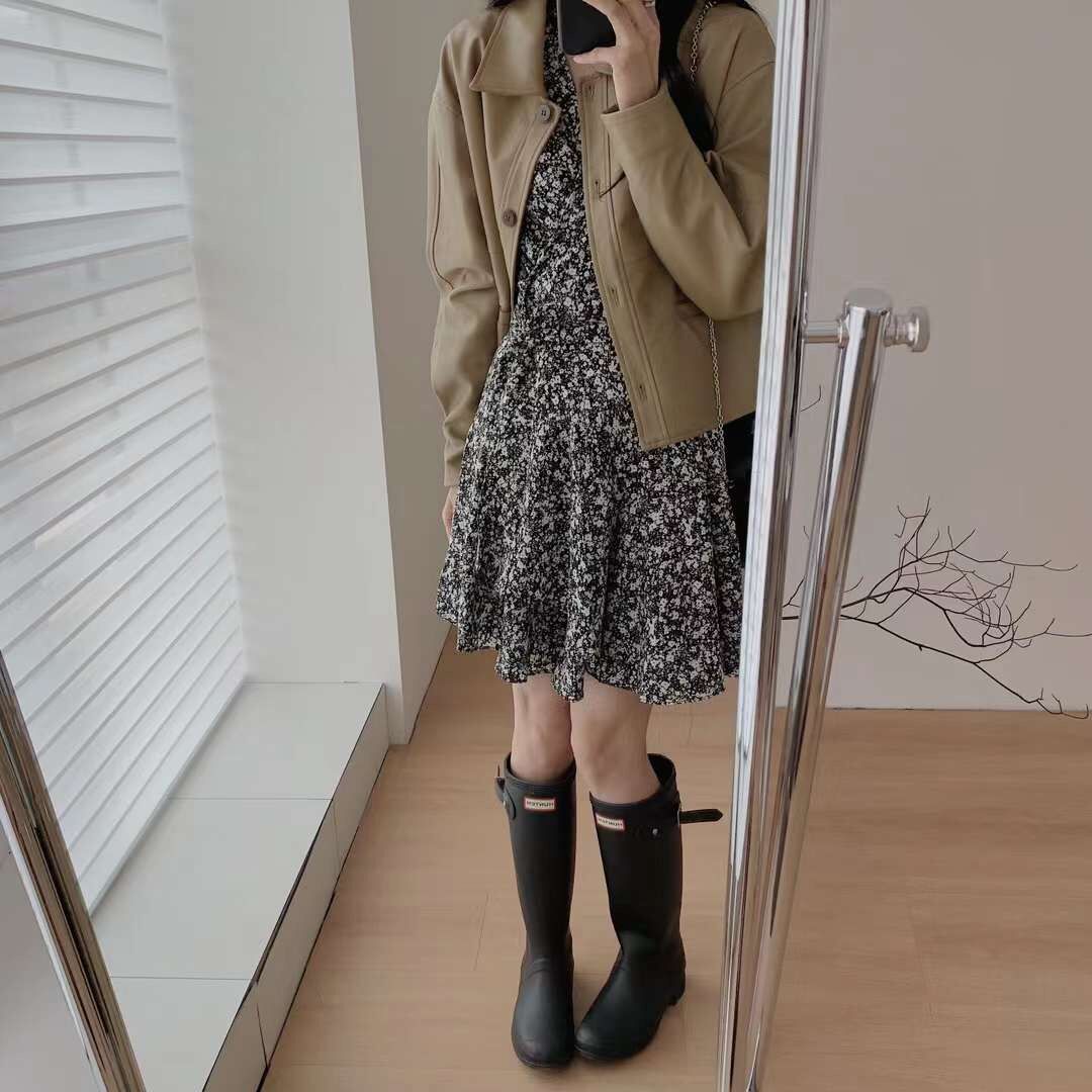 大码女装秋季2025法式港味复古宽松显瘦雪纺碎花连衣裙外套两件套