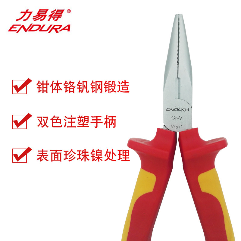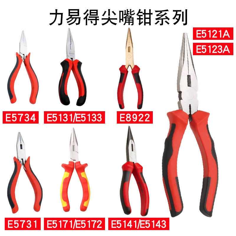 力易得尖嘴钳6寸E5121A加长8寸E5123A电工钳子多功能带剪刀加长柄