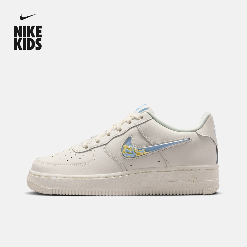 NIKE耐克女鞋大童鞋趣味小勾奶白蓝AF1空军一号小白鞋IM6697-141