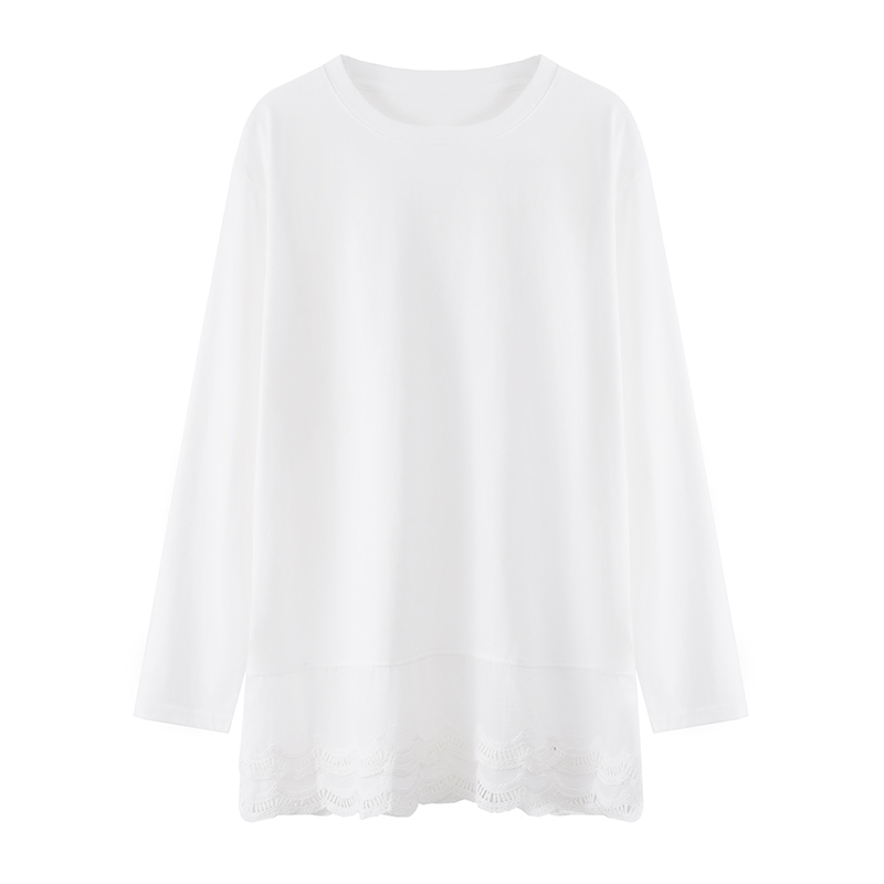 拉夏贝尔蕾丝防晒罩衫t恤女夏季2025新款中长款白色遮屁股上衣春