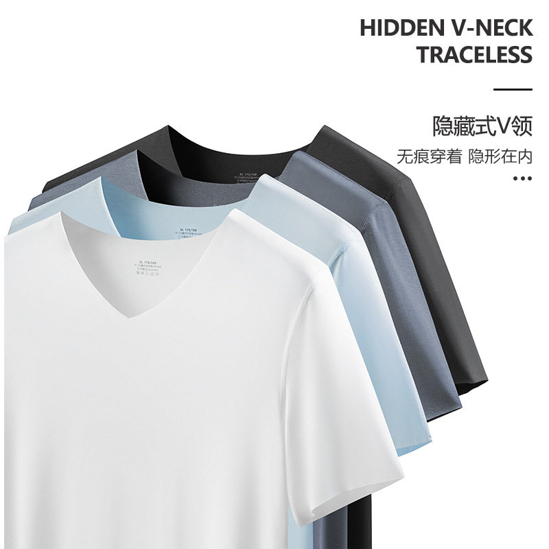 秋冬莫代尔薄款男短袖T恤无痕V领紧身打底衫背心内搭修身内衣上衣