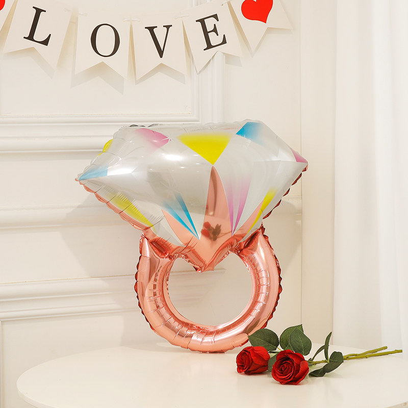 214情人节铝膜表白钻戒红唇气球结婚氛围场景布置生日装饰桌摆件