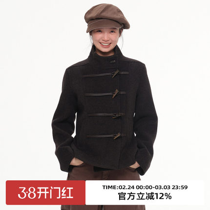omont蛋挞家50%绵羊毛复古牛角扣毛呢外套2025冬季收腰修身短大衣