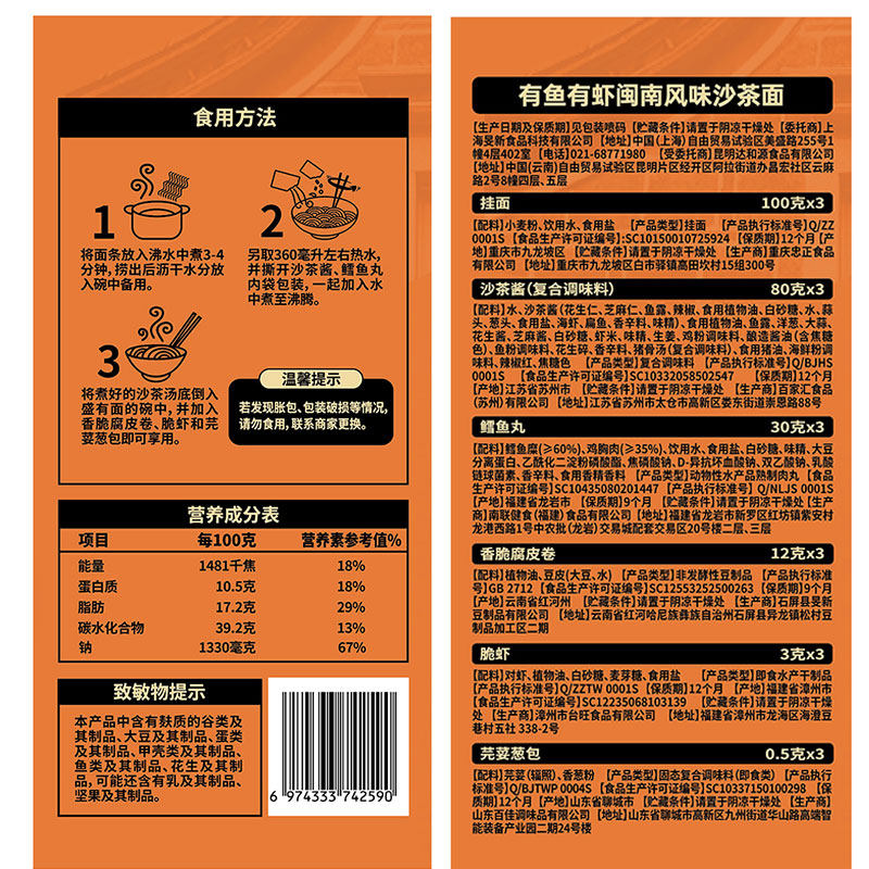 麦德龙同款饭礼记闽南风味有鱼有虾沙茶面待煮早餐手工挂面676.5g