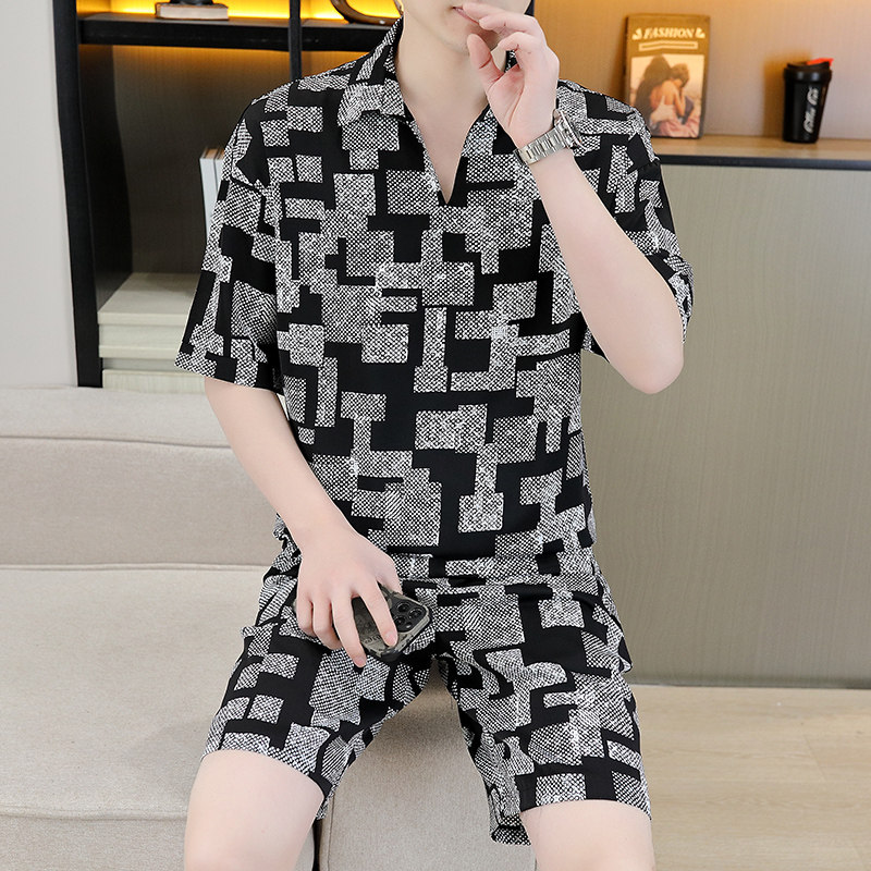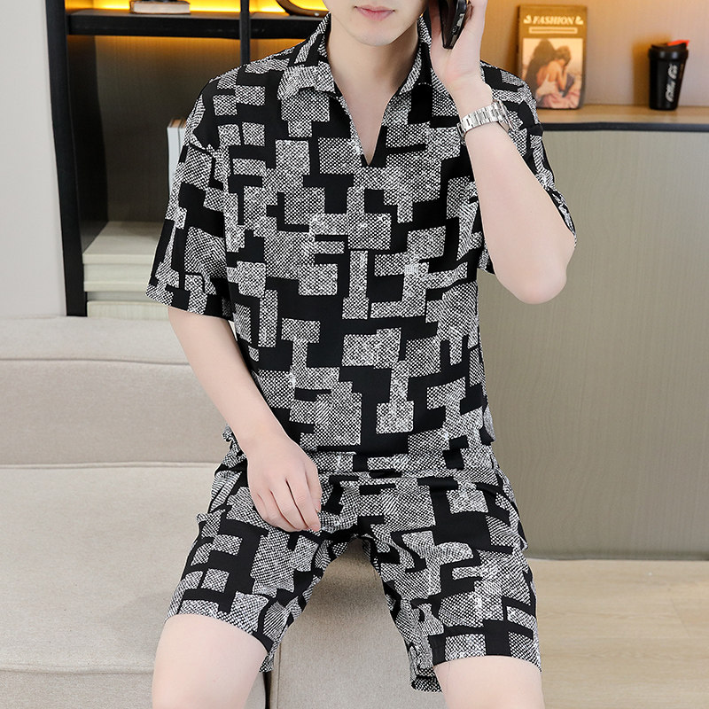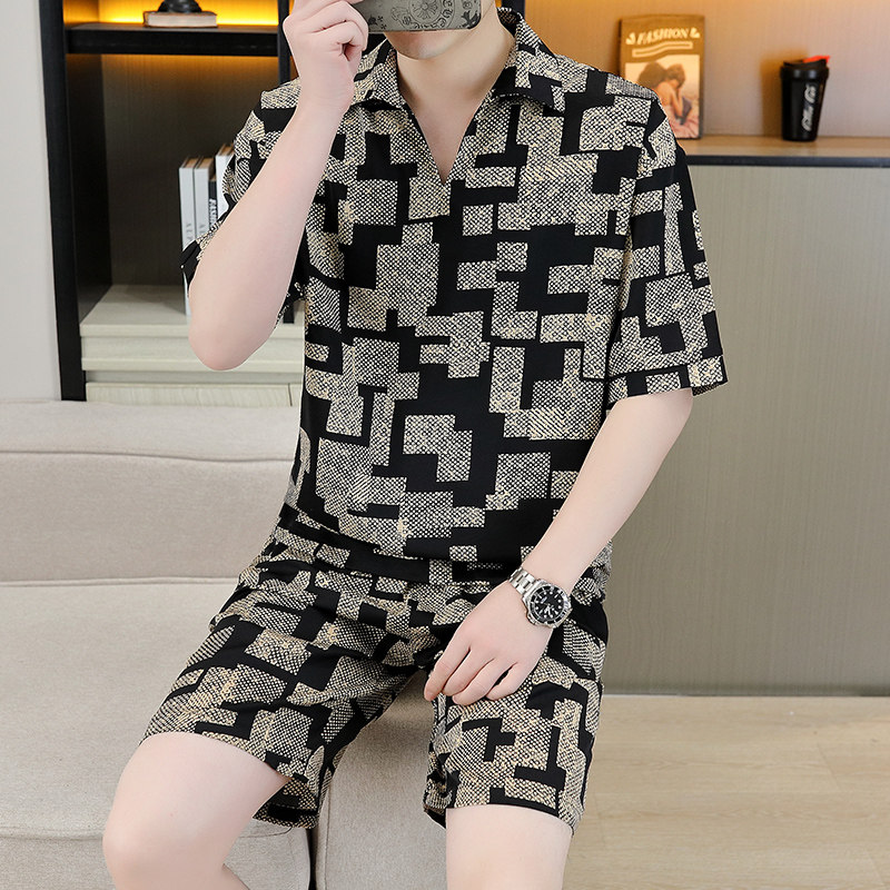 男士休闲运动套装冰丝短袖夏季2025新款帅气搭配短裤韩版男装衣服