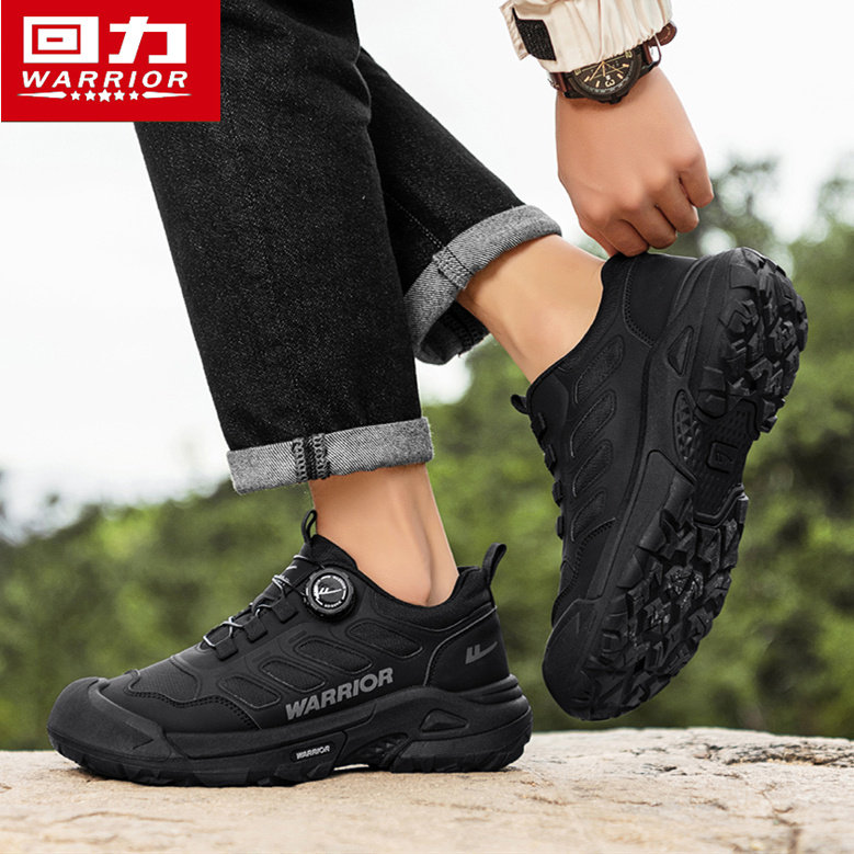回力男鞋冬季户外登山运动休闲男士跑步牛筋底防滑耐磨黑色旅游鞋