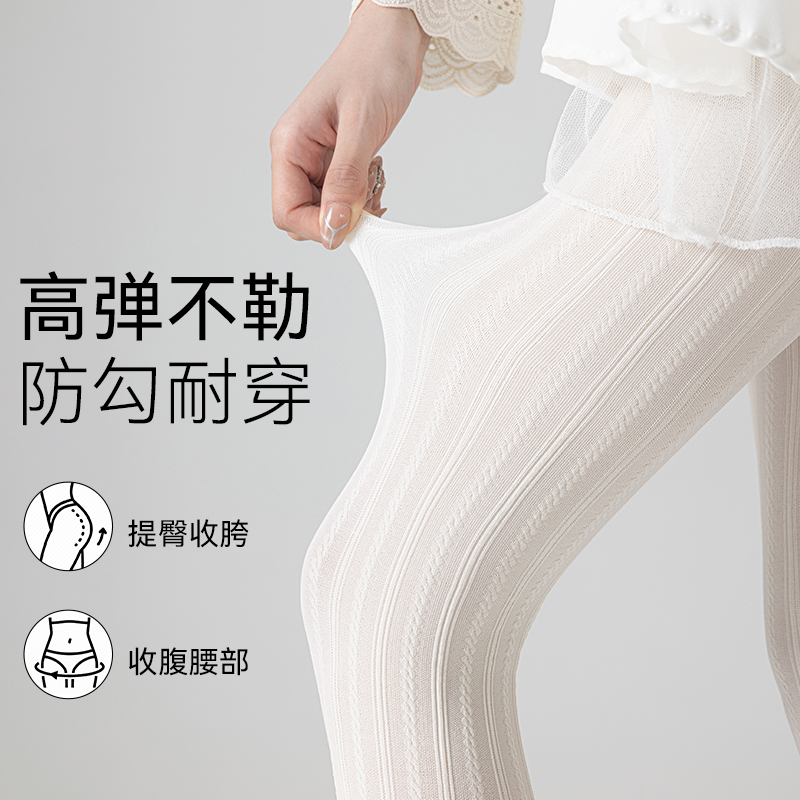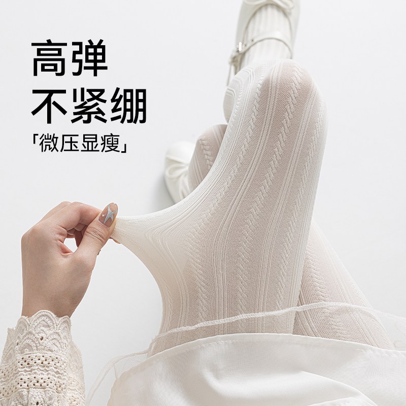 奶白色连裤袜女春秋薄款竖条麻花纹白丝袜洛丽塔压力瘦腿打底裤袜