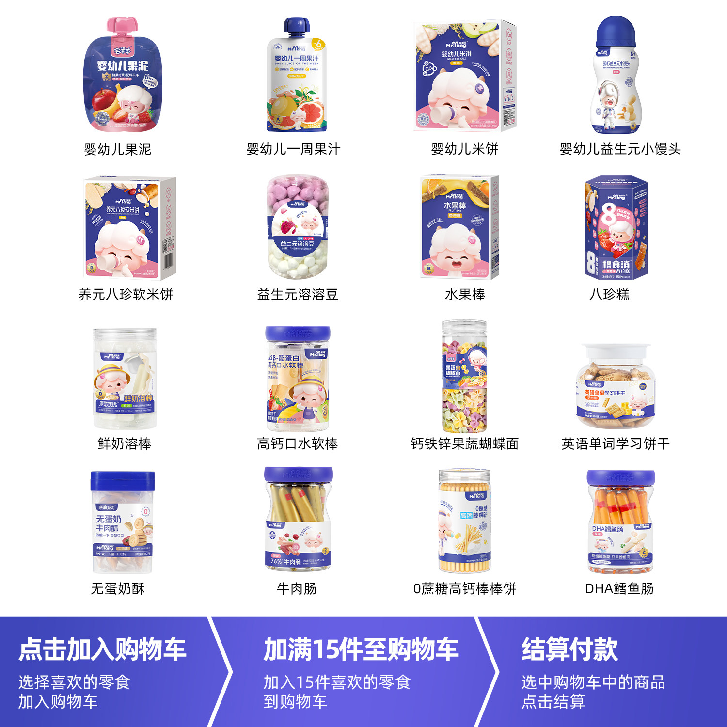 【任选15件】宅羊羊儿童零食宝宝零食鳕鱼肠米饼溶豆小馒头泡芙