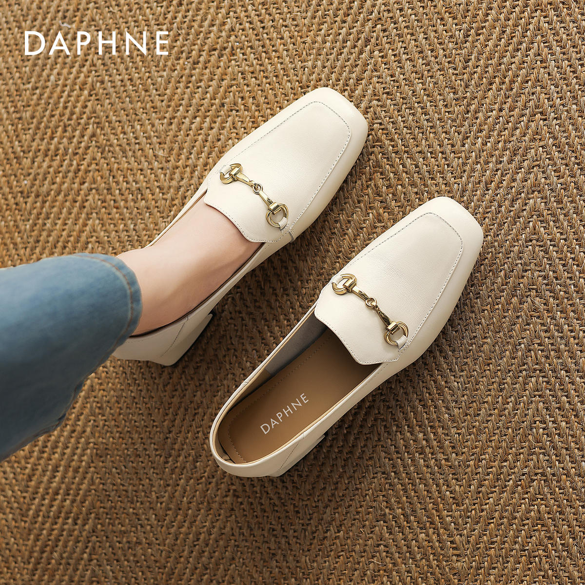 达芙妮高跟乐福鞋女2025新款黑色粗跟小皮鞋女士单鞋子一脚蹬女鞋