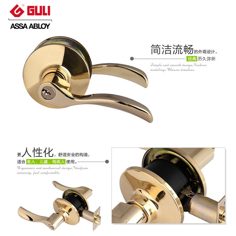 固力GULI 三杆式执手锁 室内门锁 卧室木门房门锁 B5441