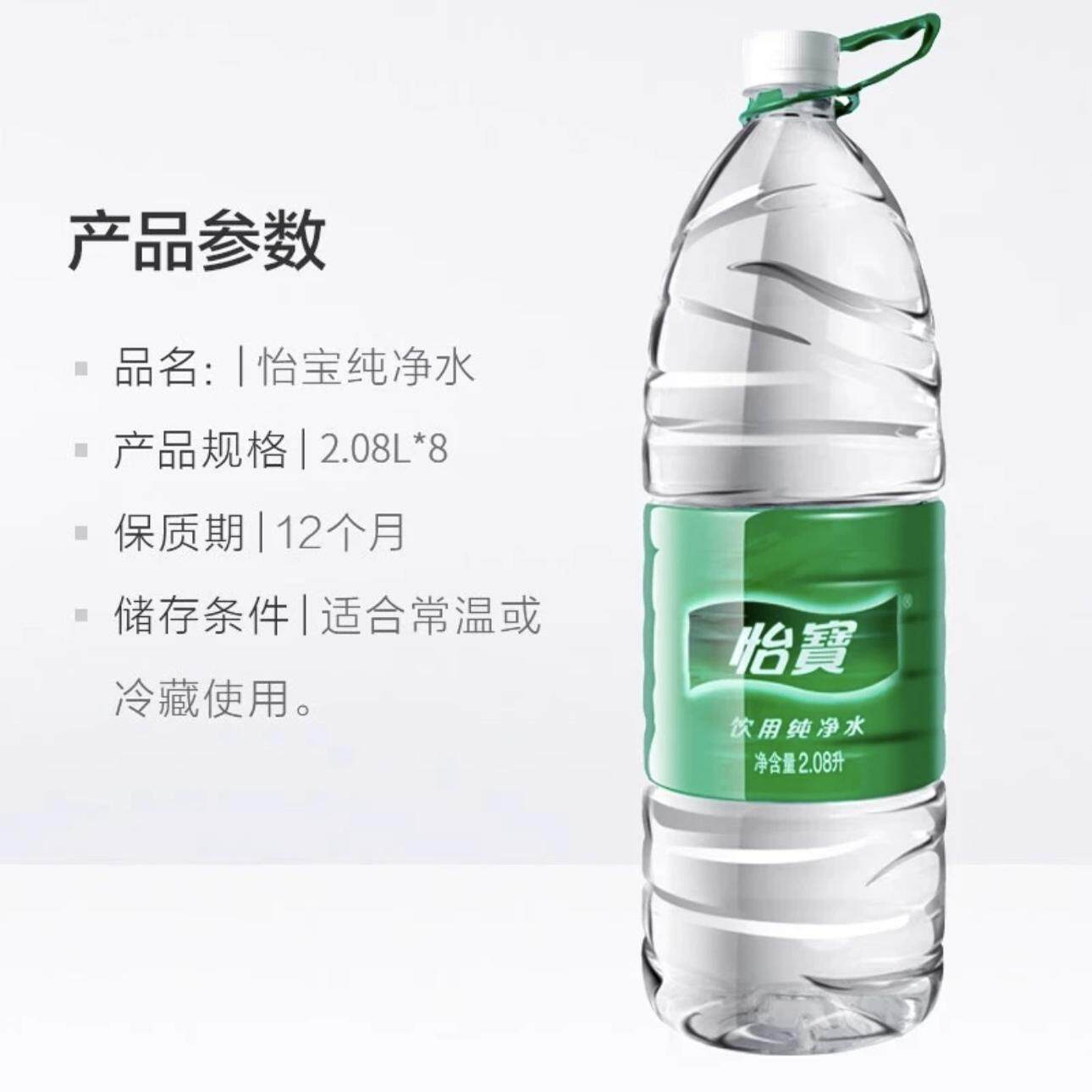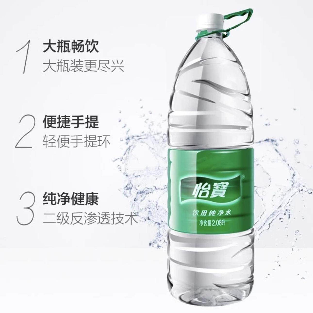怡宝纯净水塑膜装2.08L整箱大瓶家庭饮用水非矿泉水户外露营用水