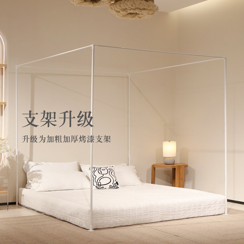 2024新款蚊帐家用卧室高级1.8米带支架1.5m三开门老式落地式纹帐