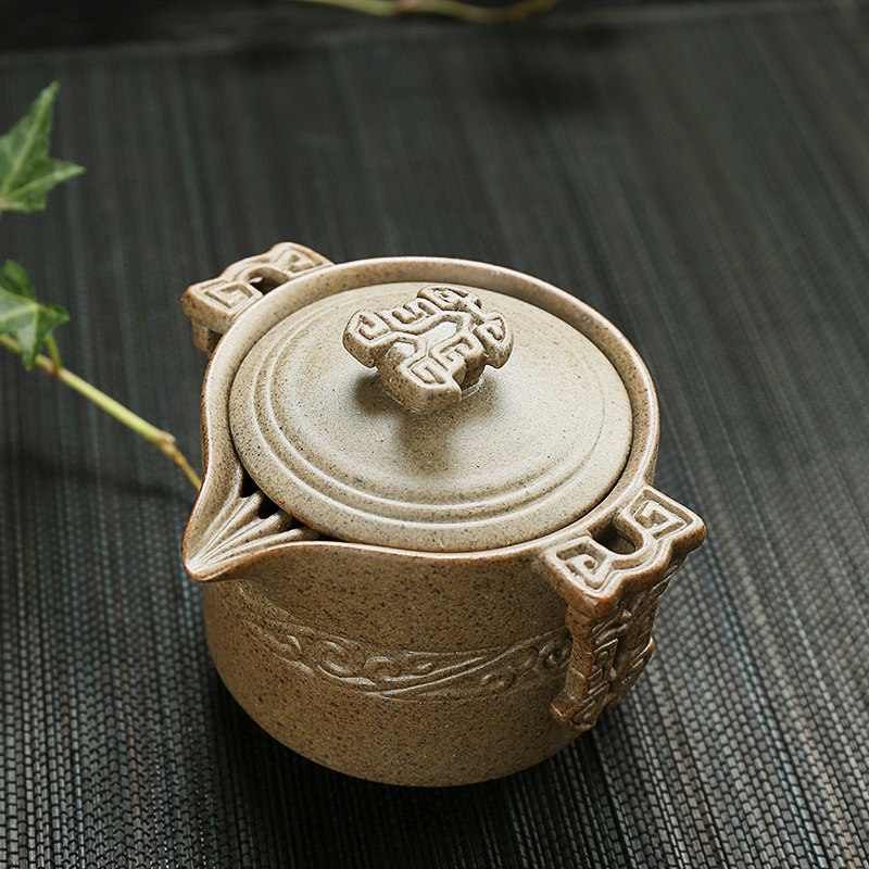 粗陶茶壶茶碗老岩泥单壶纯手工紫砂陶手抓壶复古仿古快客杯茶具