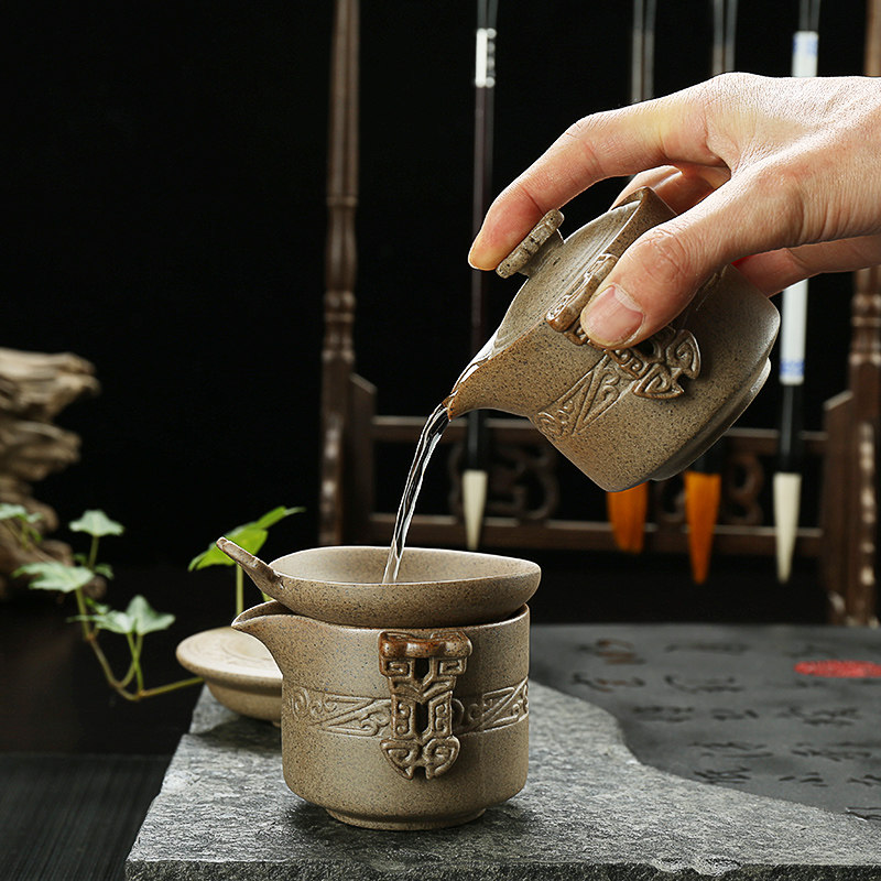 粗陶茶壶茶碗老岩泥纯手工手抓壶