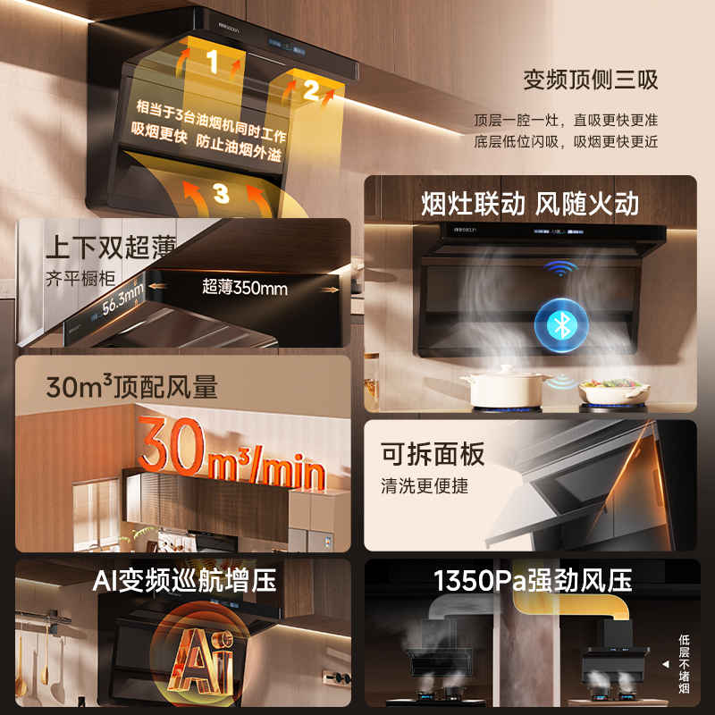 帅康Y857顶侧三吸抽油烟机燃气灶套装变频联动家用厨房大吸力26