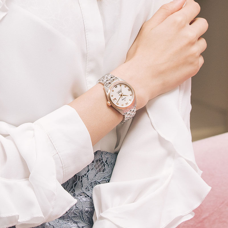 【限时钜惠】Titoni瑞士梅花手表宇宙系列贝母盘日历机械女表
