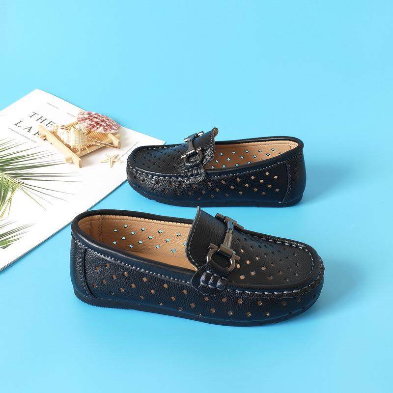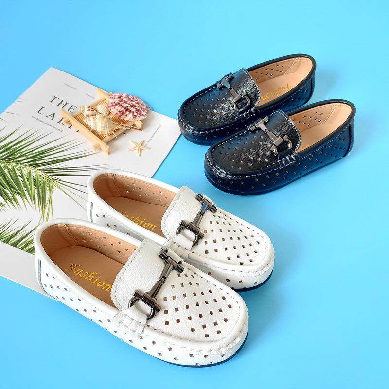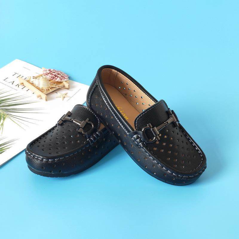 极速鞋皮鞋男童豆豆夏季镂空儿童一脚蹬软底真皮R黑色童英伦小白