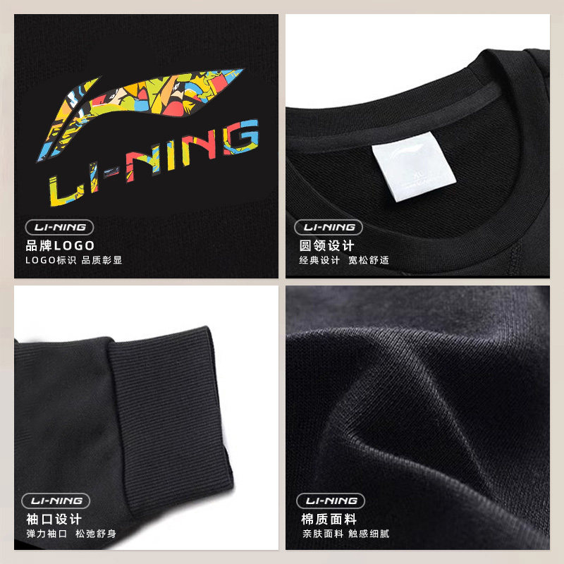 李宁加绒卫衣男子2025秋冬季新款休闲圆领潮流宽松舒适运动套头衫