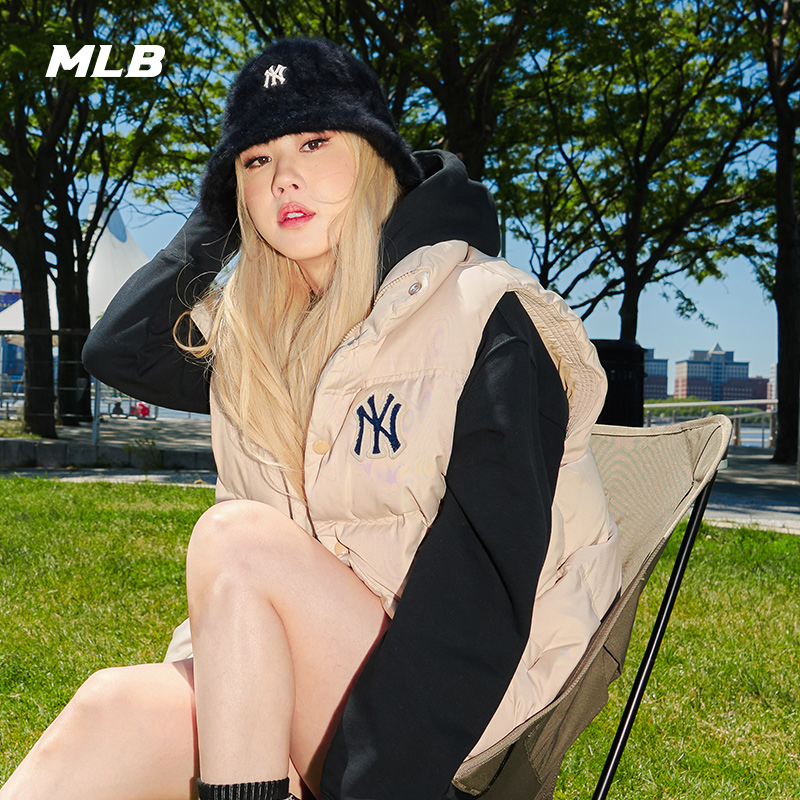 MLB官方 男女情侣明星同款学院风刺绣棉马甲时尚新款冬季DVV01