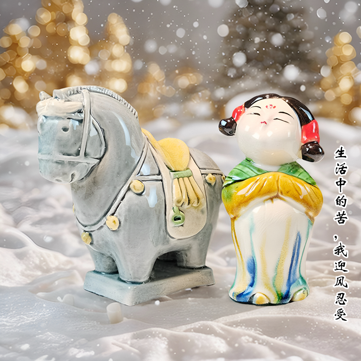 唐三彩陶瓷治愈系手办Q版唐小妞国潮洛阳博物馆文创旅游纪念礼品
