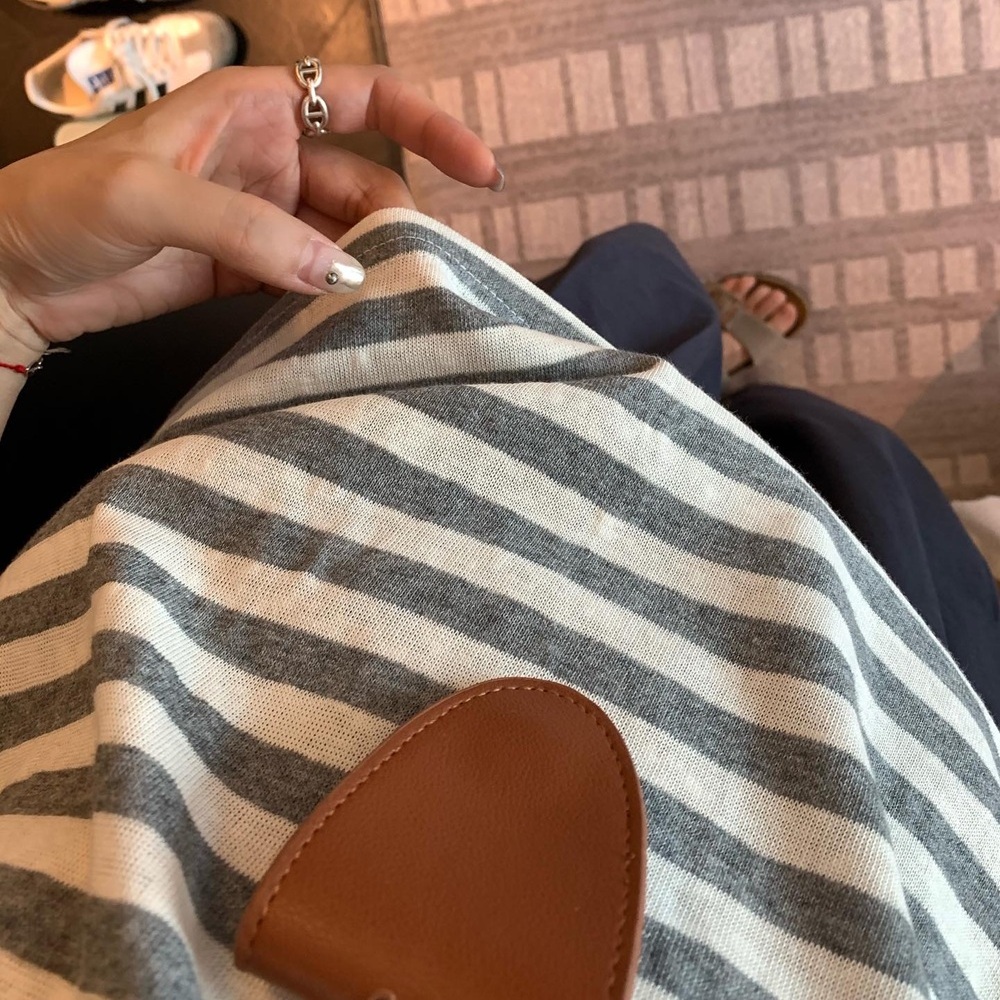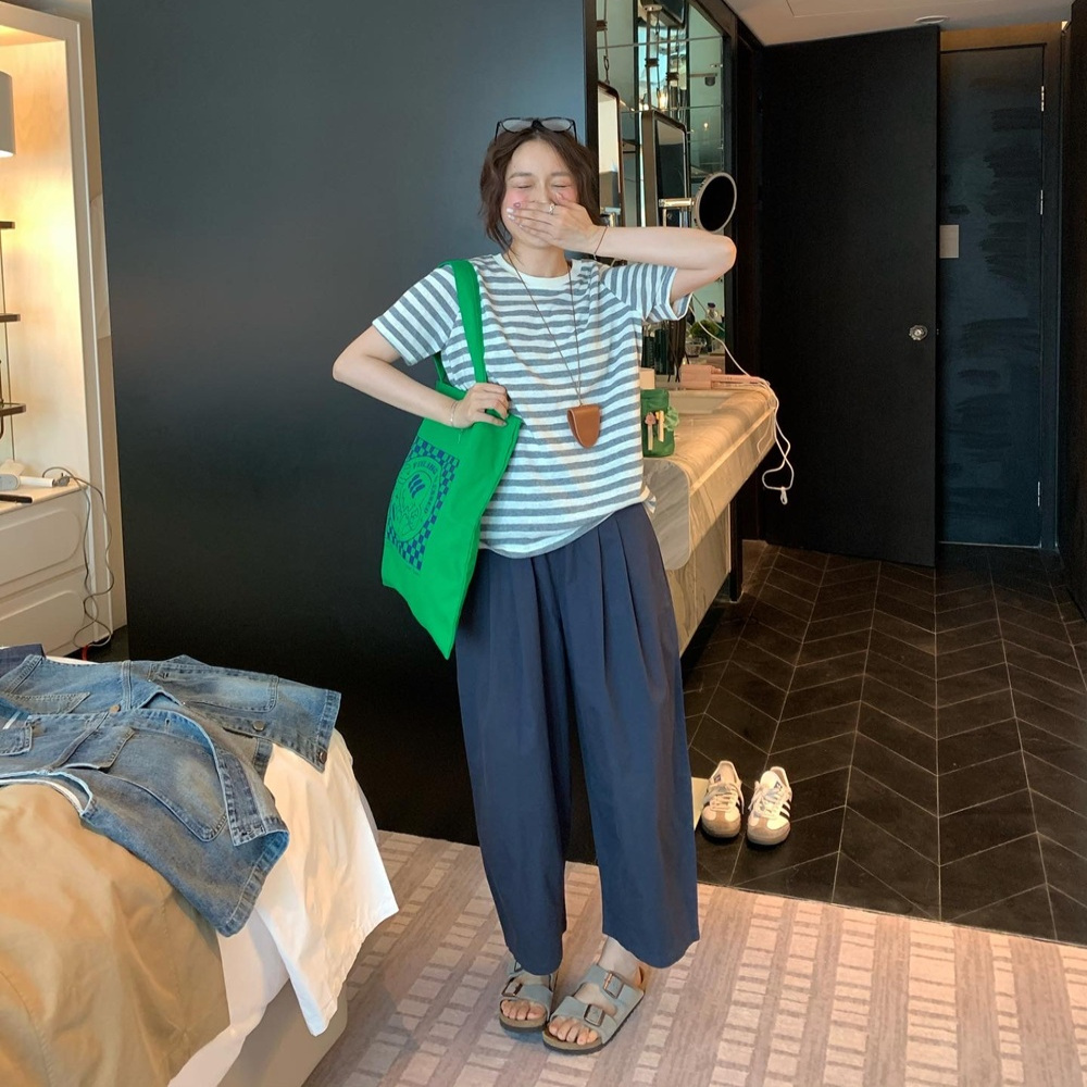 徐蹦蹦 百搭又好穿 日系春夏宽松竹节棉条纹圆领短袖T恤女上衣