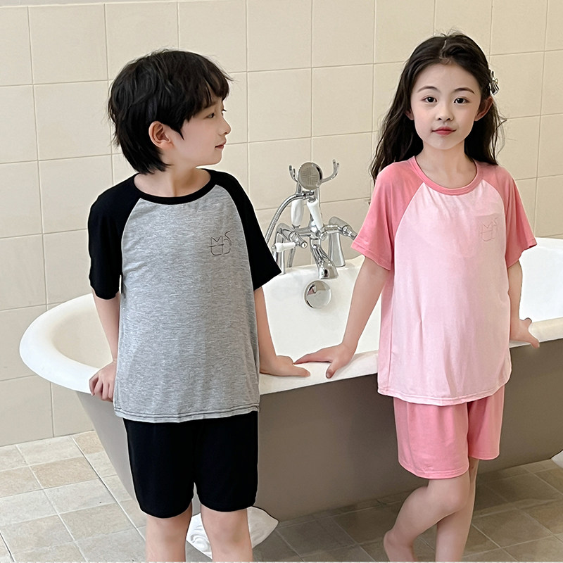 儿童莫代尔睡衣女童夏季冰凉感空调服男童短袖中大童家居服套装